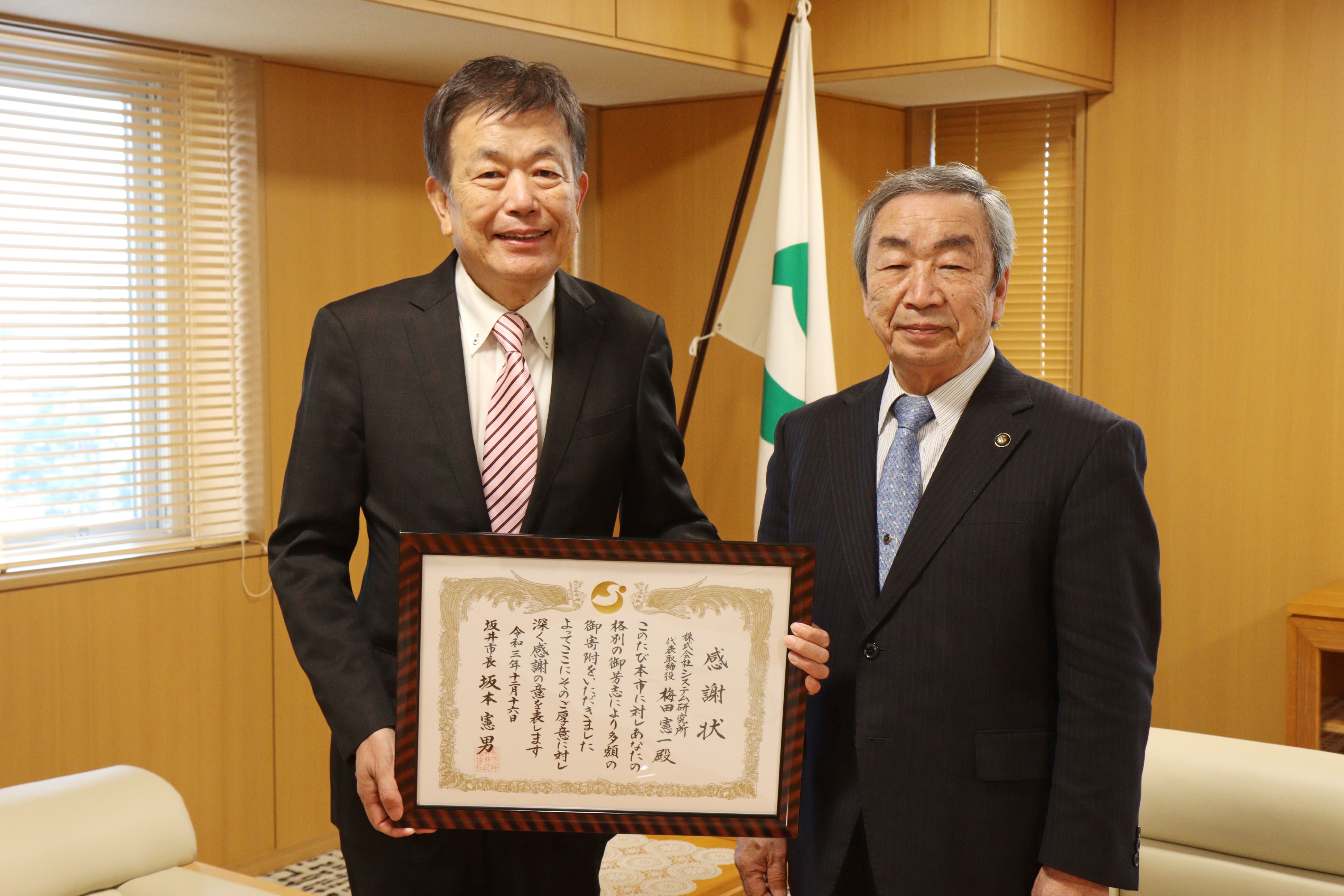 長年に渡る寄付に、坂本市長は感謝の言葉を述べた