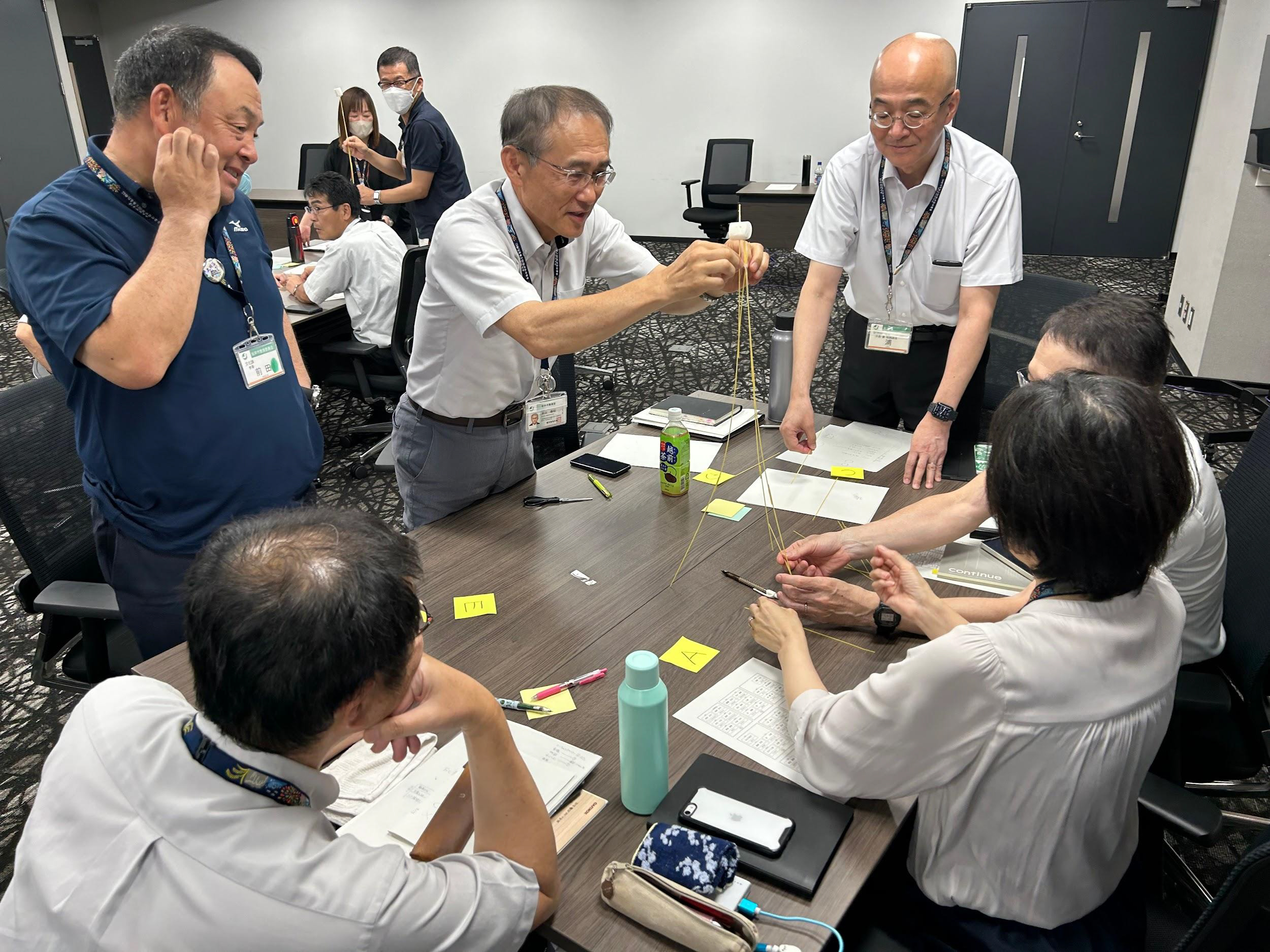 市では、管理職を対象とした職員研修会『想いをカタチにするための「実現力」講座』を7月22日に坂井市役所で開催しました。研修会には、50人が参加。講師に、ソフトバンク株式会社に所属しながら、個人事業として、人材コンサルタントとして活躍している、池田昌人氏を招いて、実施。参加者は体験型の演習やゲームなどを通して、企画提案から実現するために意識すべきポイントやテクニックなどを学んでいました。