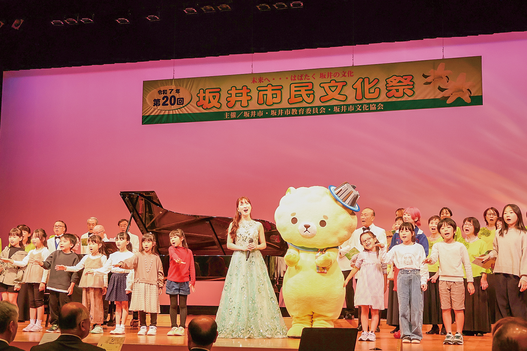 「未来へ…はばたく坂井の文化」をテーマに、第20回坂井市民文化祭が開催されました。20回の節目を迎えた今回の芸能発表は、各地区から88団体がハートピア春江に集結。また、オープニングイベントでは、歌手で坂井エキサイト大使を務める三宅里菜(みやけりな)さんと三国町合唱団、Jrコーラスsoraによる美しい歌声が、会場を盛大に彩りました。