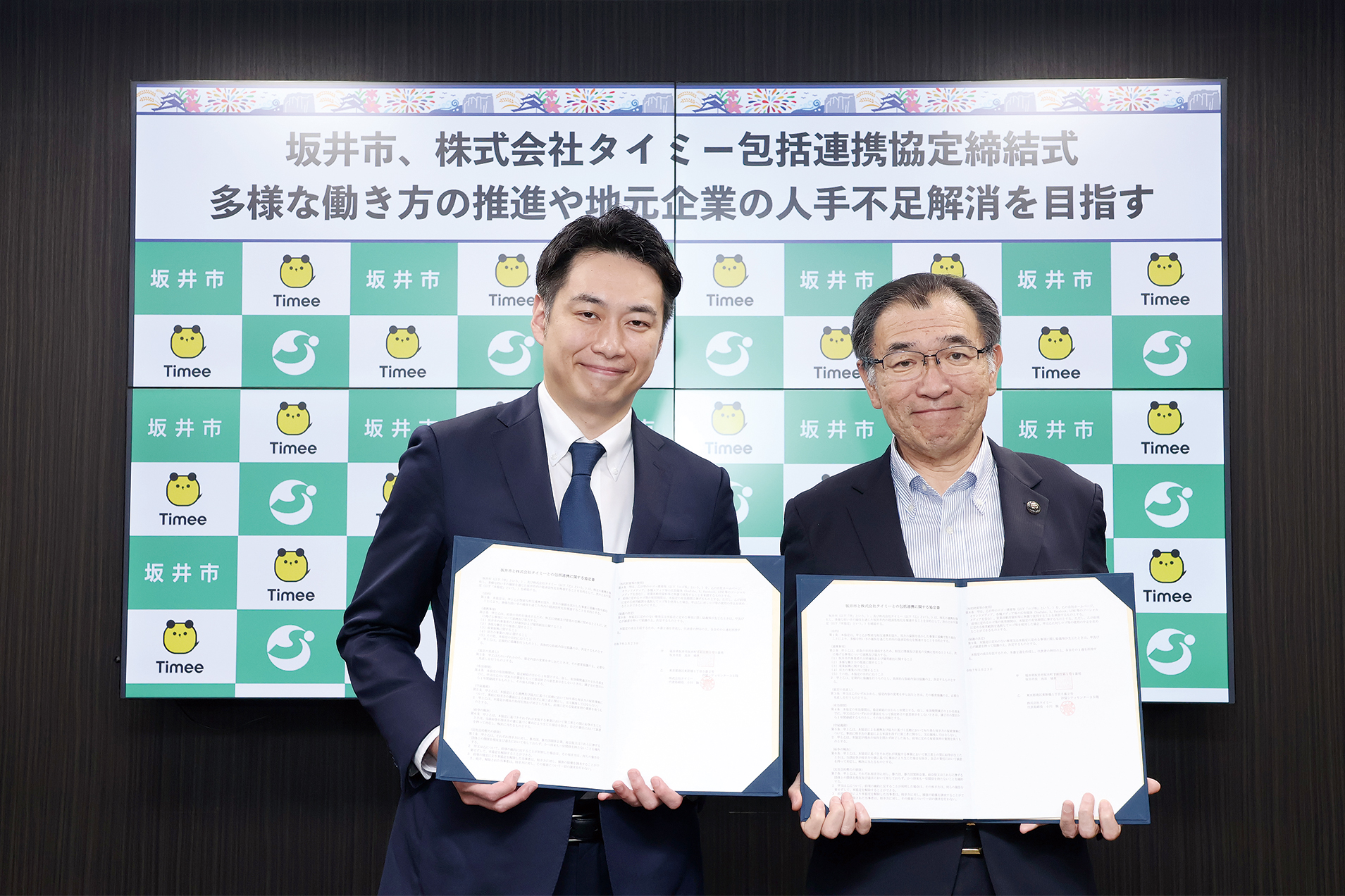 市は、株式会社タイミーと県内で初めて包括連携協定を締結しました。