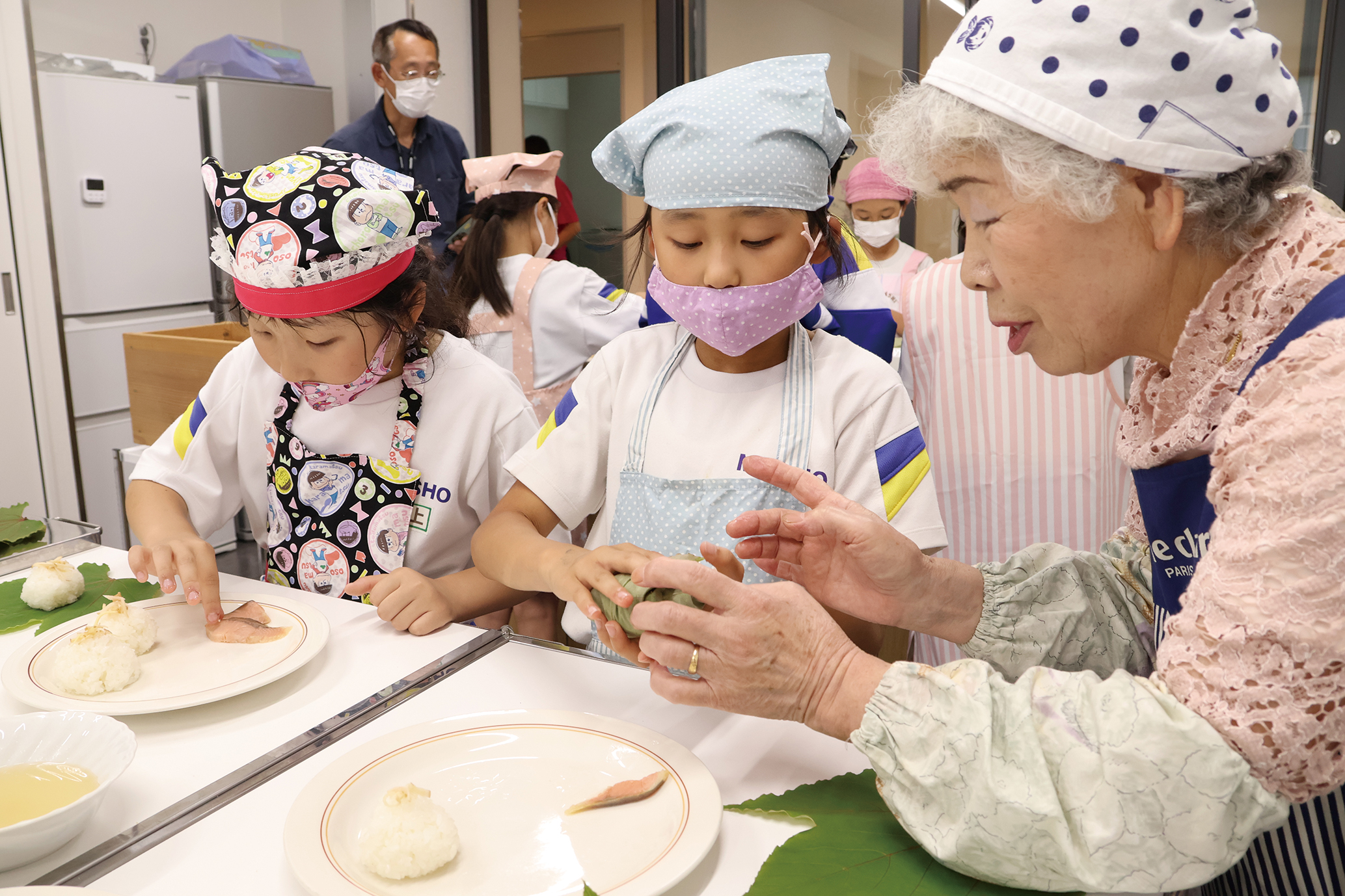明章小学校の3年生15人が、地区の郷土料理「葉っぱずし」づくりを体験しました。
