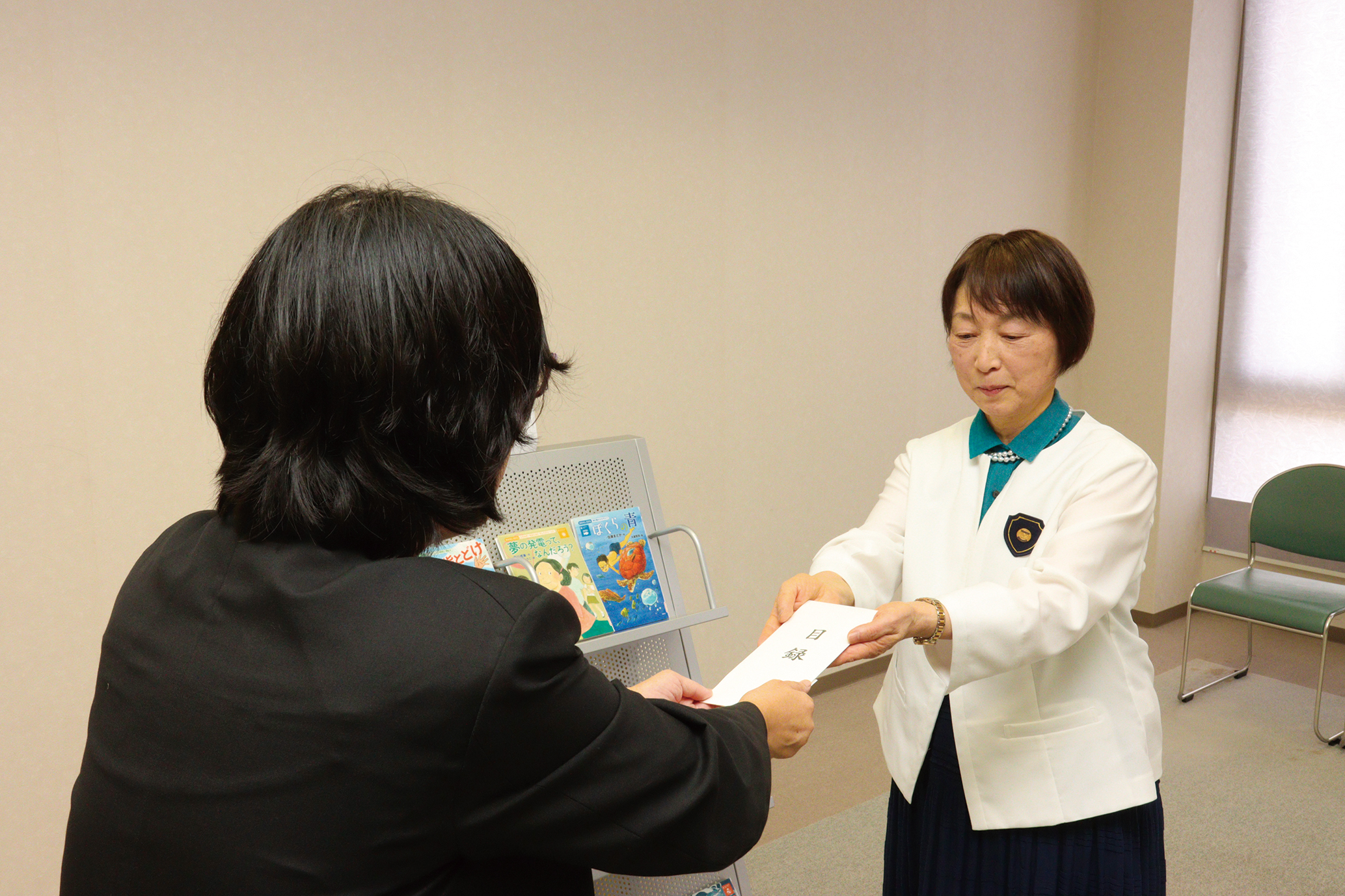 国際ソロプチミスト福井から、春江図書館に児童書20冊を寄贈していただきました。同会による春江図書館への本の寄贈は今回で11回目。寄贈に訪れた白﨑慈子(しらさきしげこ)会長は「子どもたちの学びの助けになれば」と思いを語りました。