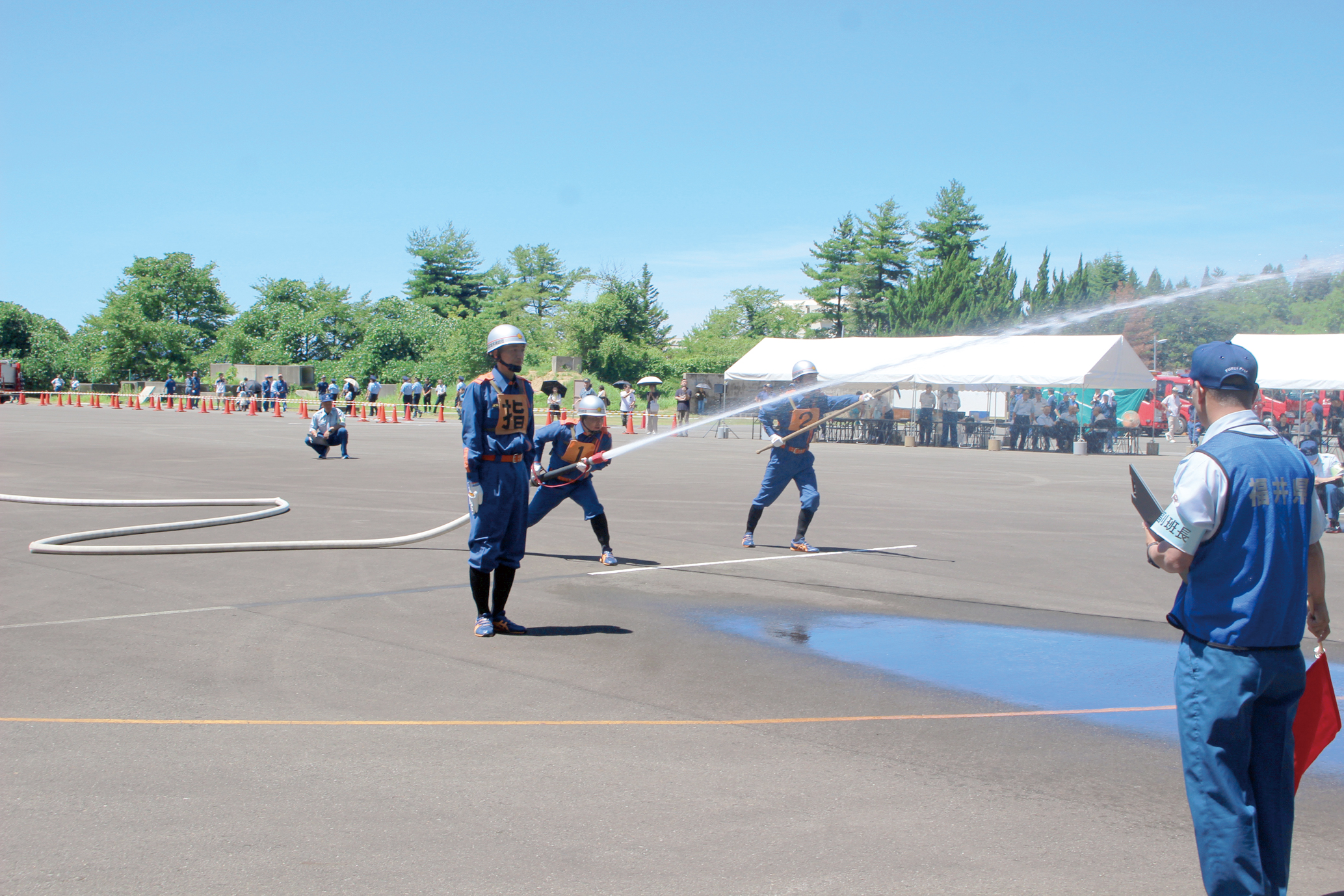 第74回福井県消防操法大会が福井県消防学校で開催されました。坂井消防団第6分団(丸岡町磯部地区)が小型ポンプ操法の部に出場。厳しい訓練に取り組んできた団員は、炎天下の中、機敏な動きで訓練の成果を披露しました。