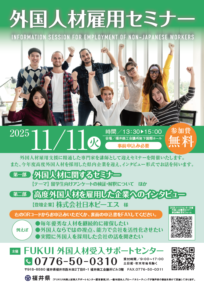 FUKUI外国人材受入サポートセンター主催のセミナーです。